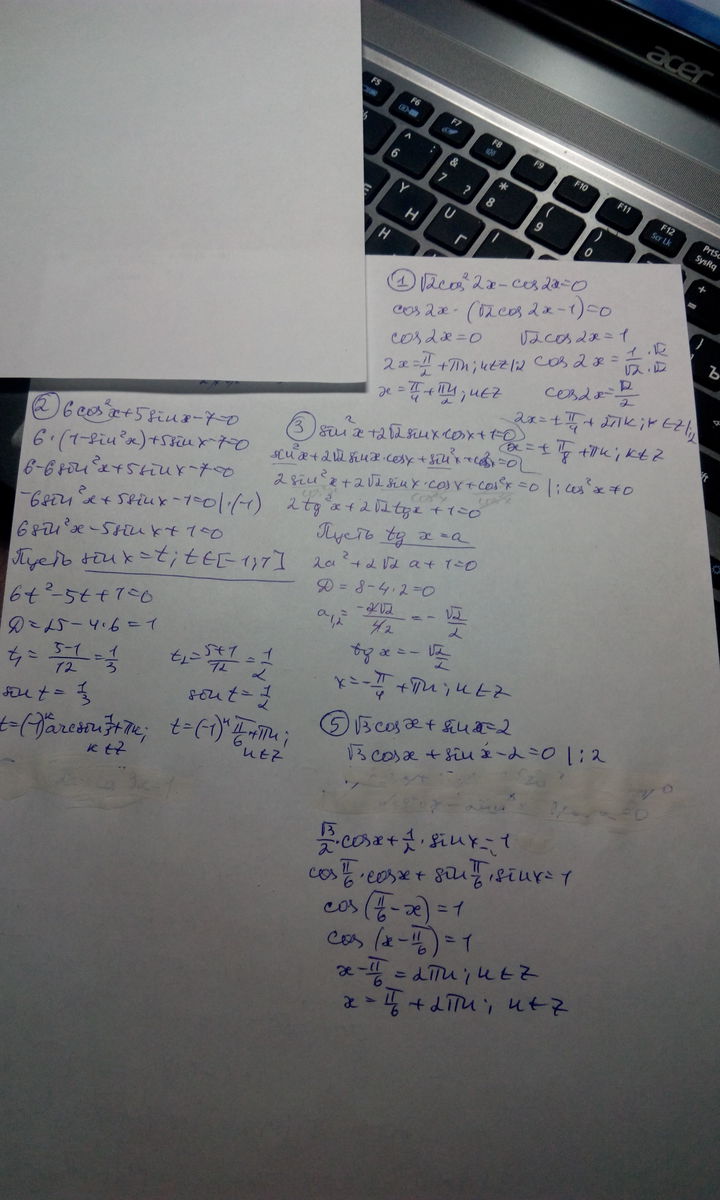 2) 6 cos^2x + 5sinx - 7=0;