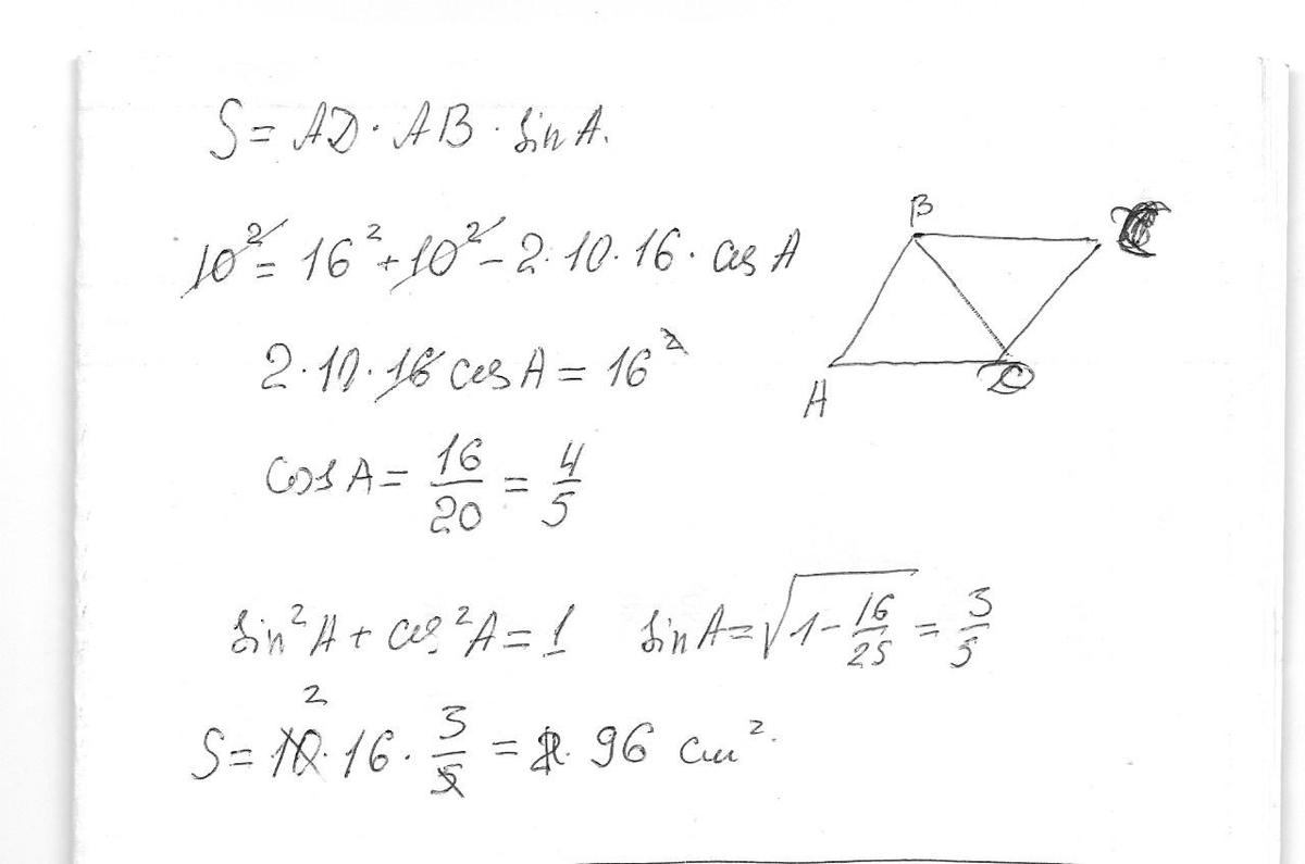 почему? второй ответ тоже возможен, к треугольнику ABD применим теорему косинусов находим косинус угла А, зная его находим синус угла A и пользуемся вторым пунктом. Вы неправы.