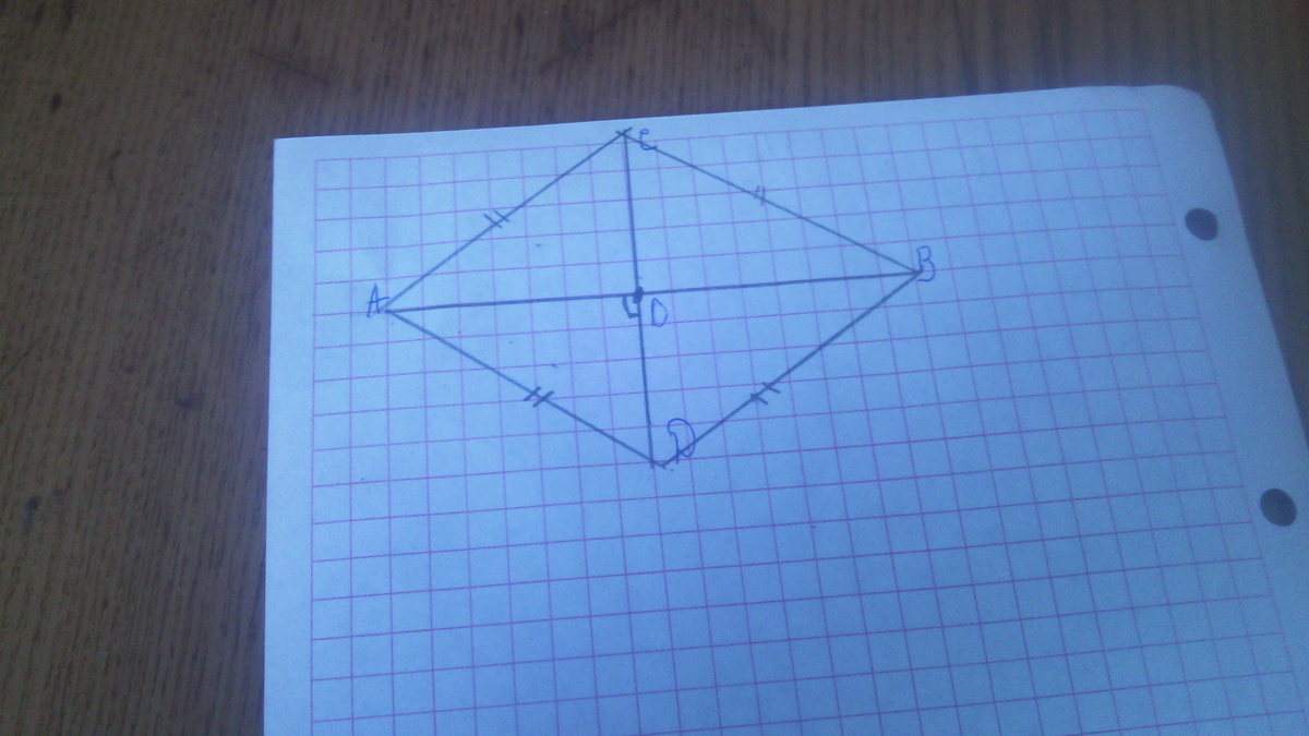 Начертите отрезок АВ. Постройте прямую перпендикулярную отрезку АВ и проходящую через его середину. Отметьте на ней точки С и D так, чтобы четырехугольник АСВD был симметричен относительно прямой АВ.