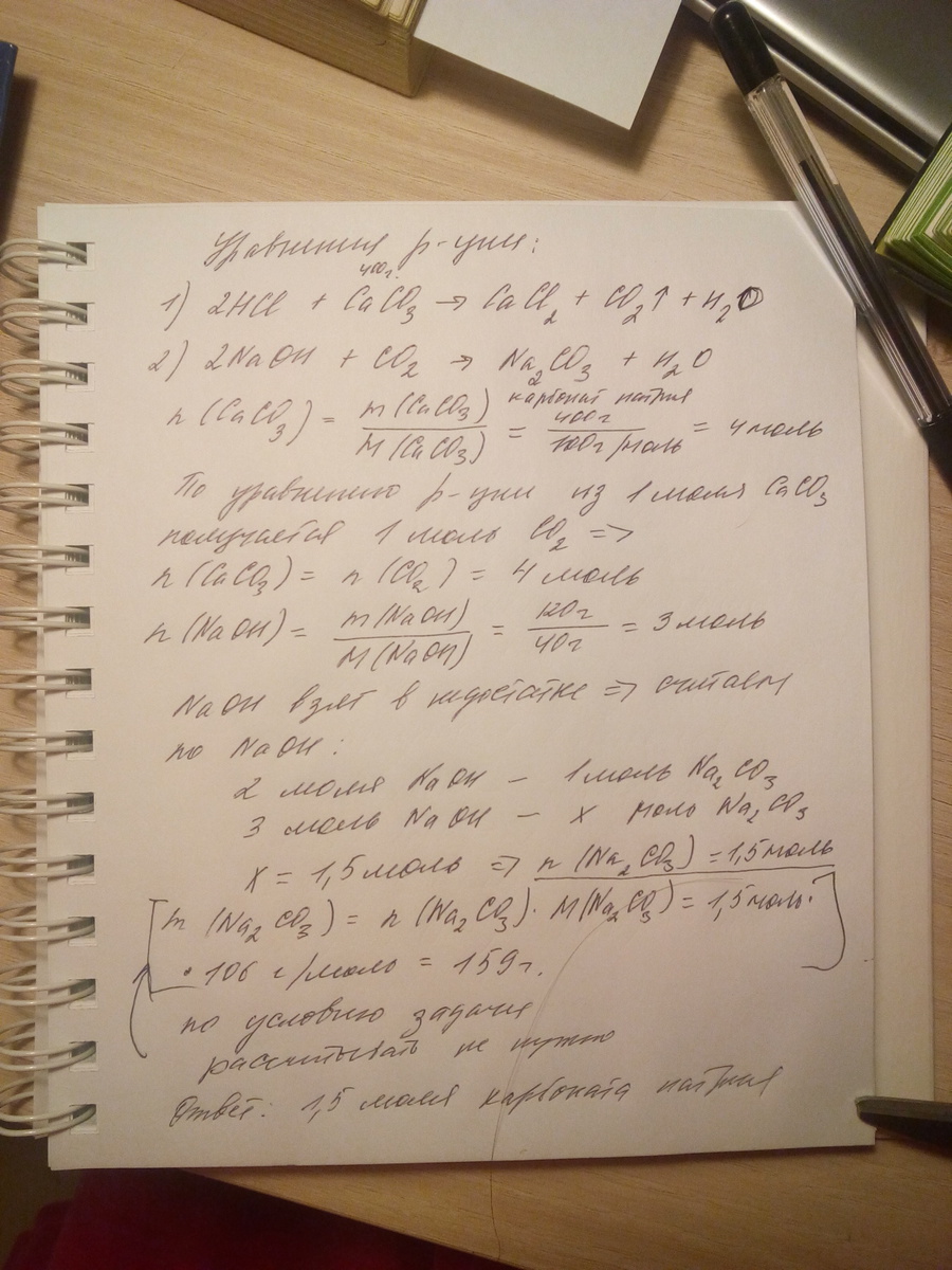 Через раствор, содержащий 120 г гидроксида натрия, пропустили оксид углерода(4), полученный при действии избытка соляной кислоты на 400 г карбоната кальция. Какая соль при этом образовалась? Определите её количество.(
