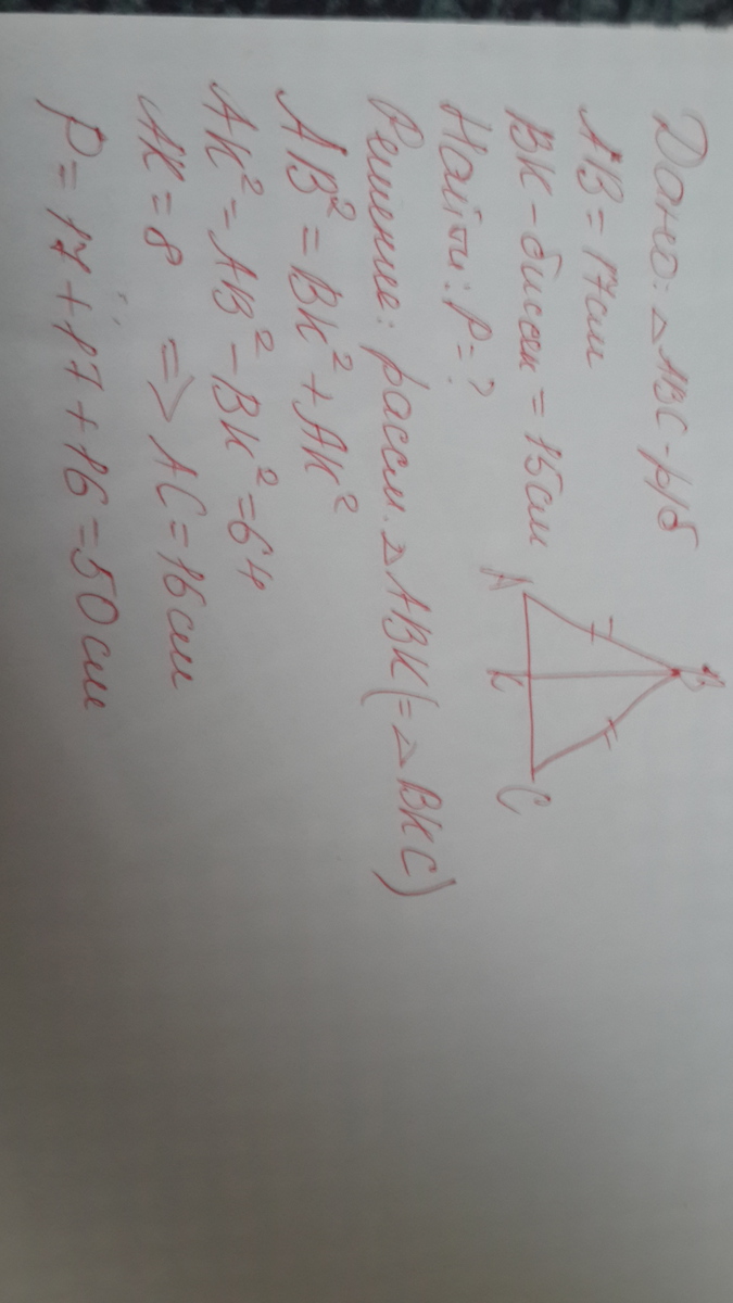боковая сторона равнобедренного треугольника равна 17 см а биссектриса проведенная к основанию 15 см найдите периметр это треугольника