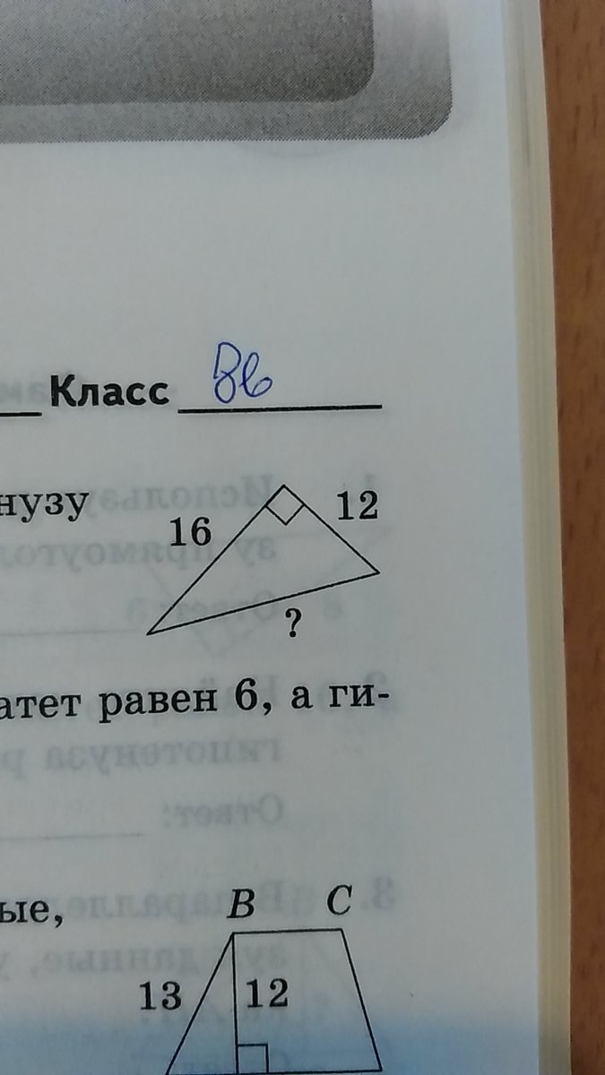 Используя данные, указанные на рисунке, найдите гипотенузу прямоугольного треугольника.