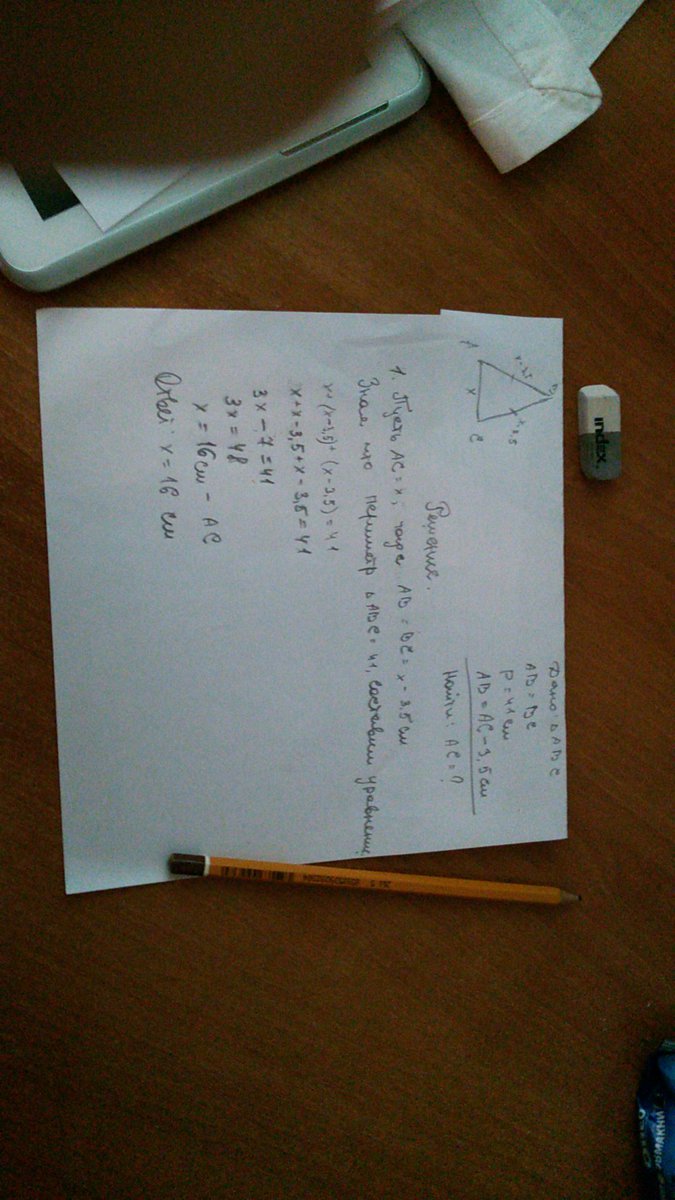 Периметр равнобедренного треугольника равен 41 см, причём боковая сторона на 3,5 см меньше основания. Тогда основание треугольника будет равно