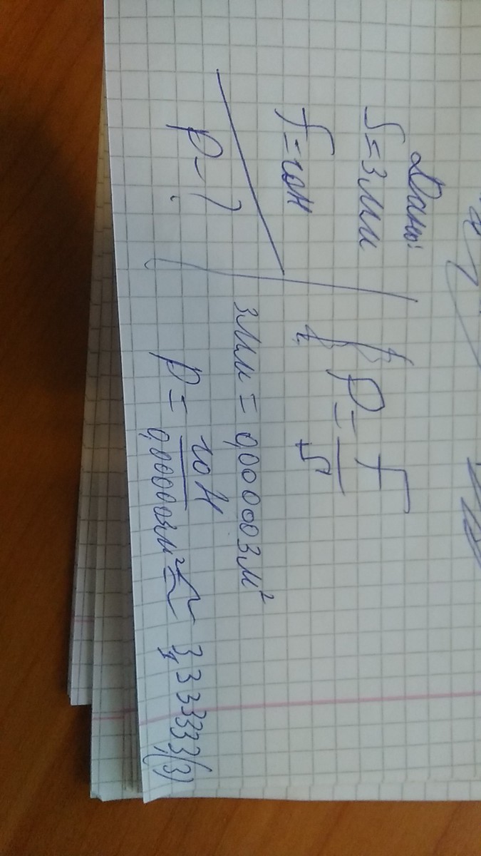 Молотком ударят по шляпке гвоздя площадью 3 мм квадрат с силой 10 . Каково при этом давление молотка на гвоздь?
