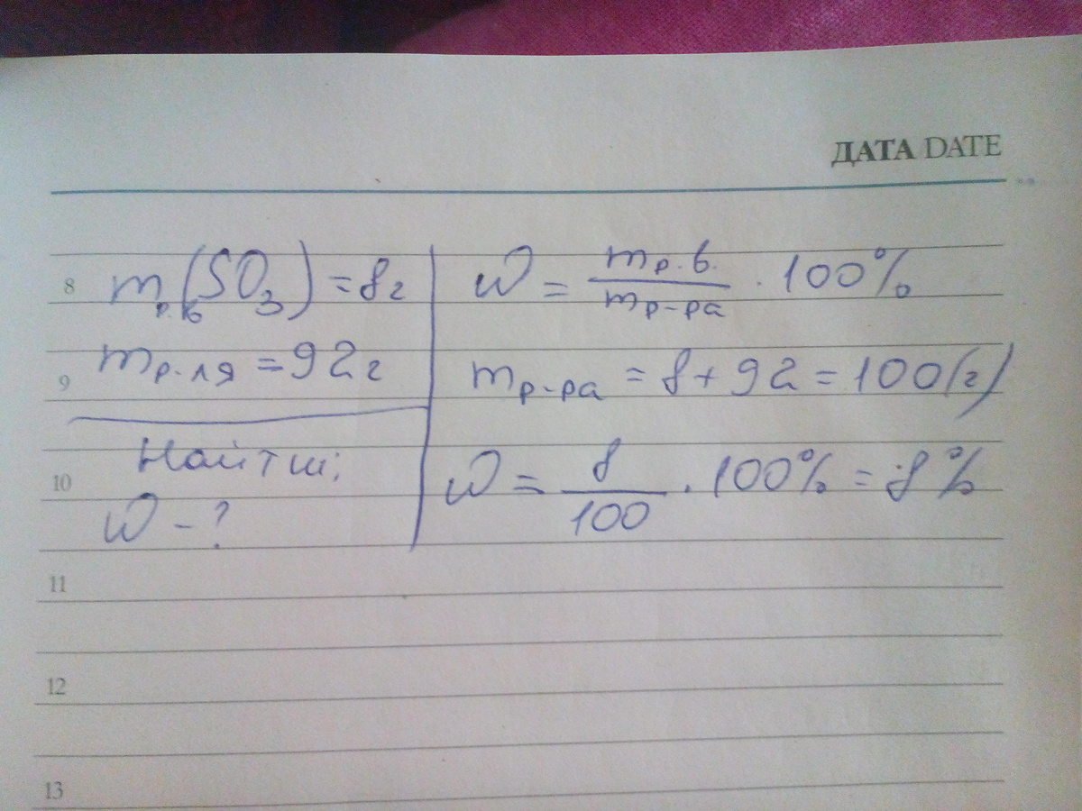оксид серы (6) массой 8г растворили в 92 г воды.Определите массовую долю серной кислоты в образовавшемся растворе.
