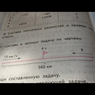 Решите плиз Составь и запиши задачу по чертежу. Известно: 1скорость73км/ч, время 4 ч, расстояние 560км придумайте плиз