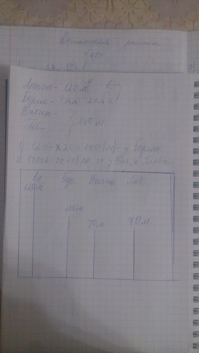 3)Антон, Борис, Вагит и Глеб собирают марки. У Антона 120 марок, у Бориса на 20 марок меньше, а у Вагита и Глеба - по 140 марок. Постройте линнейную диаграмму количества марок у мальчиков. Единичный отрезок и количество марок , им изаброжаемое, выберите самостоятельно.