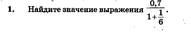frac{0,7}{1+ frac{1}{6} } =  frac{0,7}{ frac{7}{6} } При делении дробь переворачивается и 0,7 превращаем в дробное число: