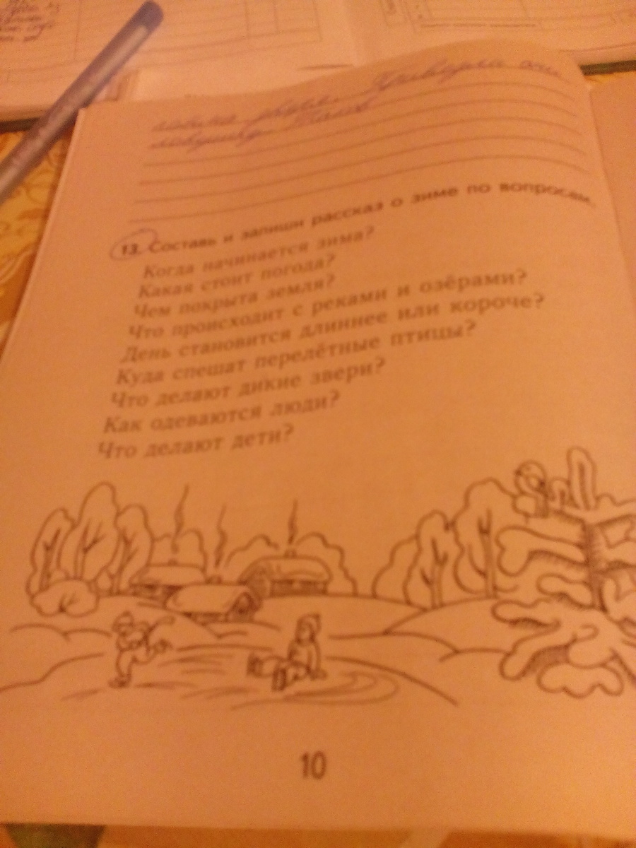 Осень плавно перетекает в Зиму, как будто одевая белую шубу и окутывая все своим даром снега. Погода мгновенно переходит с более тёплой в холодную. Холодные ветра, снег белым белом, замершие речки.. День как будто растягивается и становится длинее. Перелётные птицы спешат в тёплые края, на юг. Дикие звери в лесах уже давно сделав запасы на зиму, уже спрятались в своих норках, дуплах и убежищах. А медведи и вообще в спячку ушли.. Люди же тепло одеваются, никак летом в жару. Они одеваются в куртки, шарфы, одевают перчатки и шапки. А дети же веселиться при всем этом, катаются на санках, коньках и играют в различные игры: снежки и строение домов и башен из снега. Зима - время холодов и веселья!