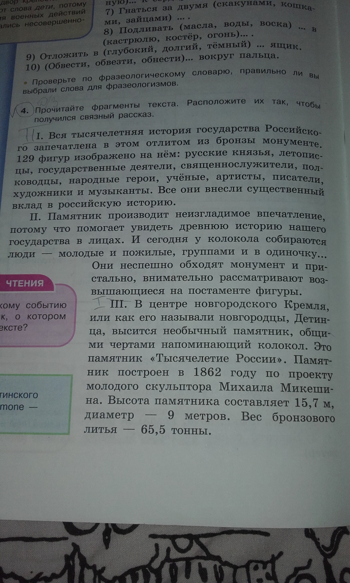 3.Какая длина,диаметр,вес памятника "Тысячелетие России"?.