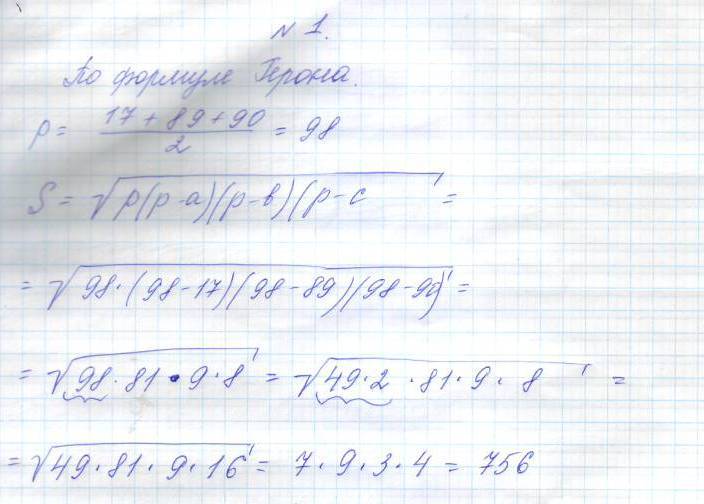 1. Площадь треугольника со сторонами 17, 89, 90.