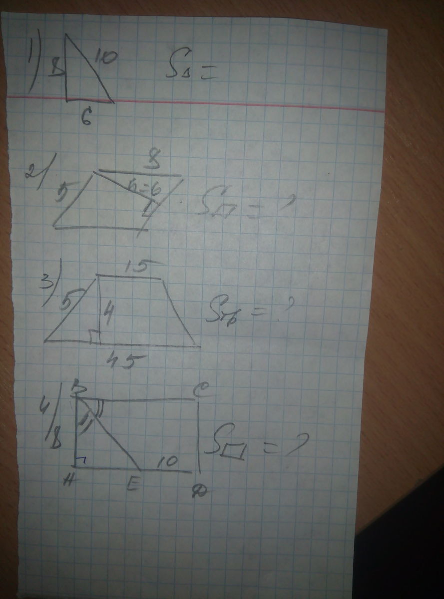 Угол ABE=EBC=90:2=45. В ∆ABE угол А прямой, значит, ABE+BEA=90, но тк ABE=45, то и BEA=45. Получается, ∆ABE равнобедренный, и в нём AB=AE=8. Теперь мы можем найти AD=8+10=18. Ну и S=ab=8*18=посчитайте сами, лень калькулятор открыть