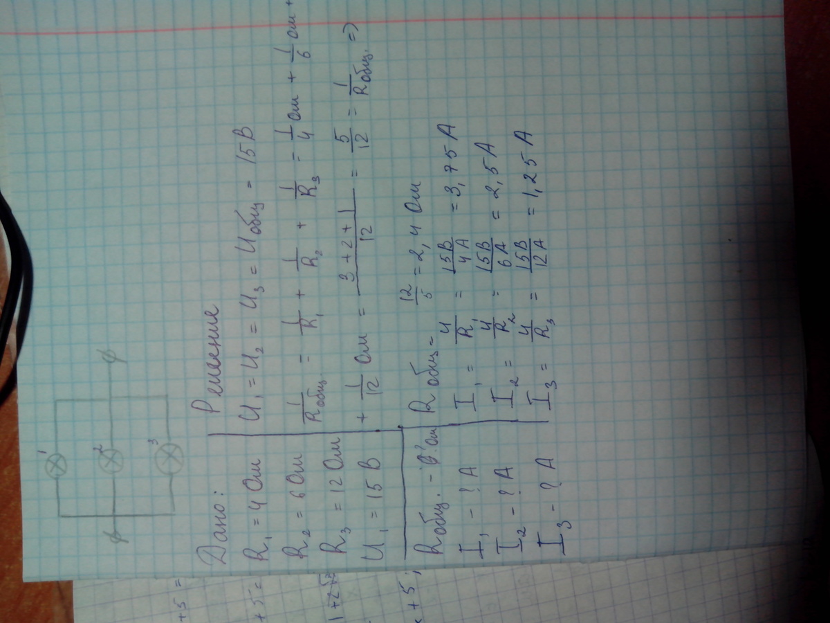 Надо учить законы параллельного соединенмя проводников. И на консультации ходить если не понимаешь, учителя я думаю не убьют. Там не 5/12, а 6/12 цифры поменяешь.