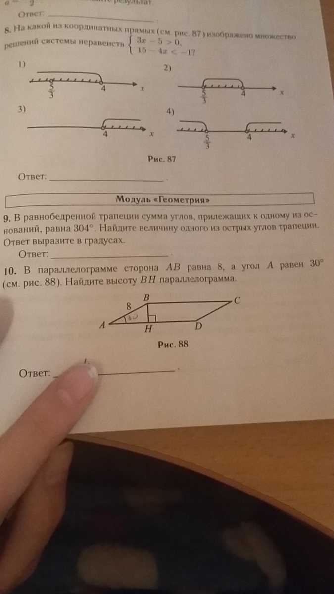 Катет лежащий против угла в 30градусов равен половине гипотенузы.Гипотенуза равна 8 значит катет равен 4. ОТВЕТ 4
