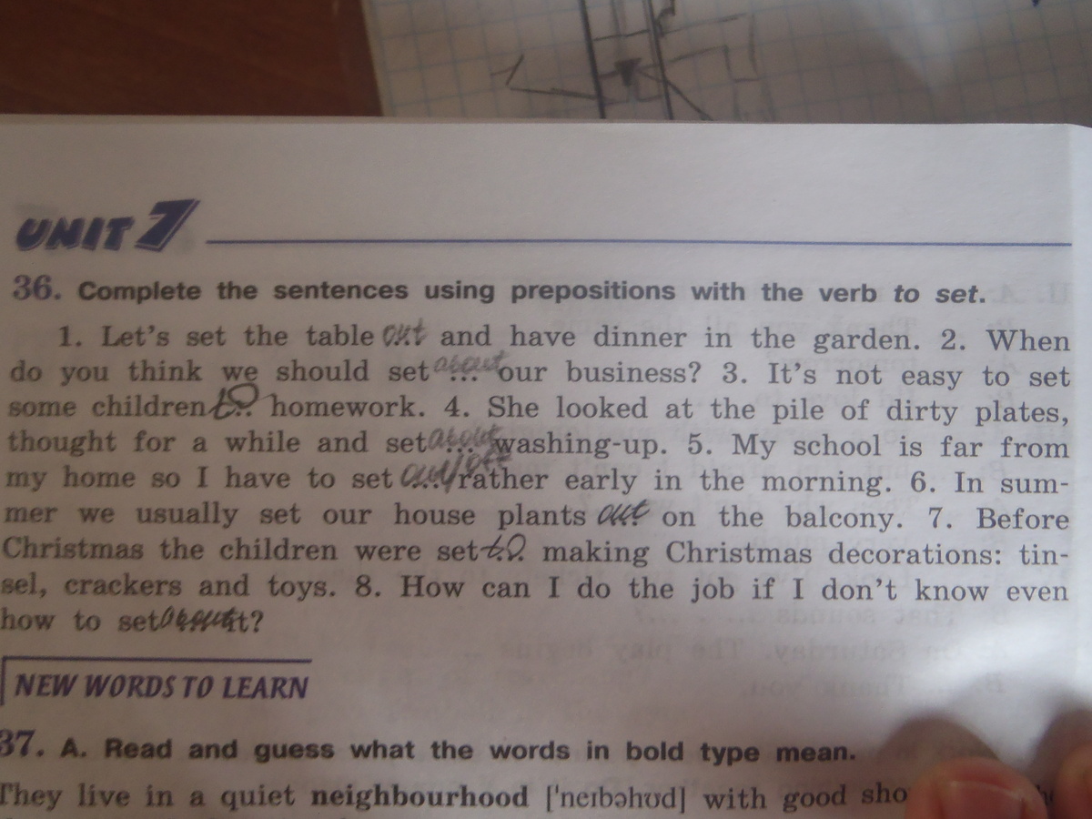 1. Давайте накроем на стол и пообедаем в саду. 2. Когда вы подумаете над тем, чтобы приступить к нашему бизнесу? 3. Это нелегко - задавать некоторым детям домашнее задание (не уверена). 4. Она посмотрела на груду грязных тарелок, немного подумала и приступала к мойке посуды. 5. Моя школа далеко от дома, так что я должен отправлять ранним утром. 6. Летом мы обычно ставим комнатые растения на балкон. 7. Перед Рождеством дети делали рождественнские украшения: мишуру, крекеры и игрушки. 8. Как я могу делать работу, если я даже не знаю, как приступить к ней?