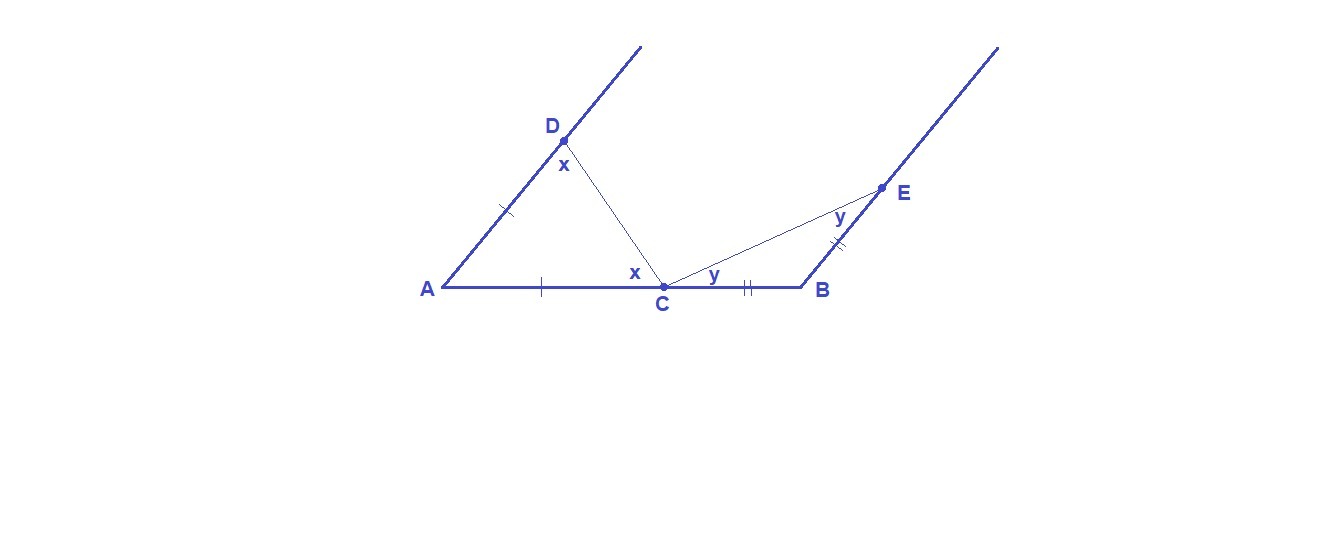 На отрезке AB взята точка C. Через точки A и B проведены по одну сторону от AB параллельные лучи. На них отложены отрезки AD=AC и BE=BC. Точка C