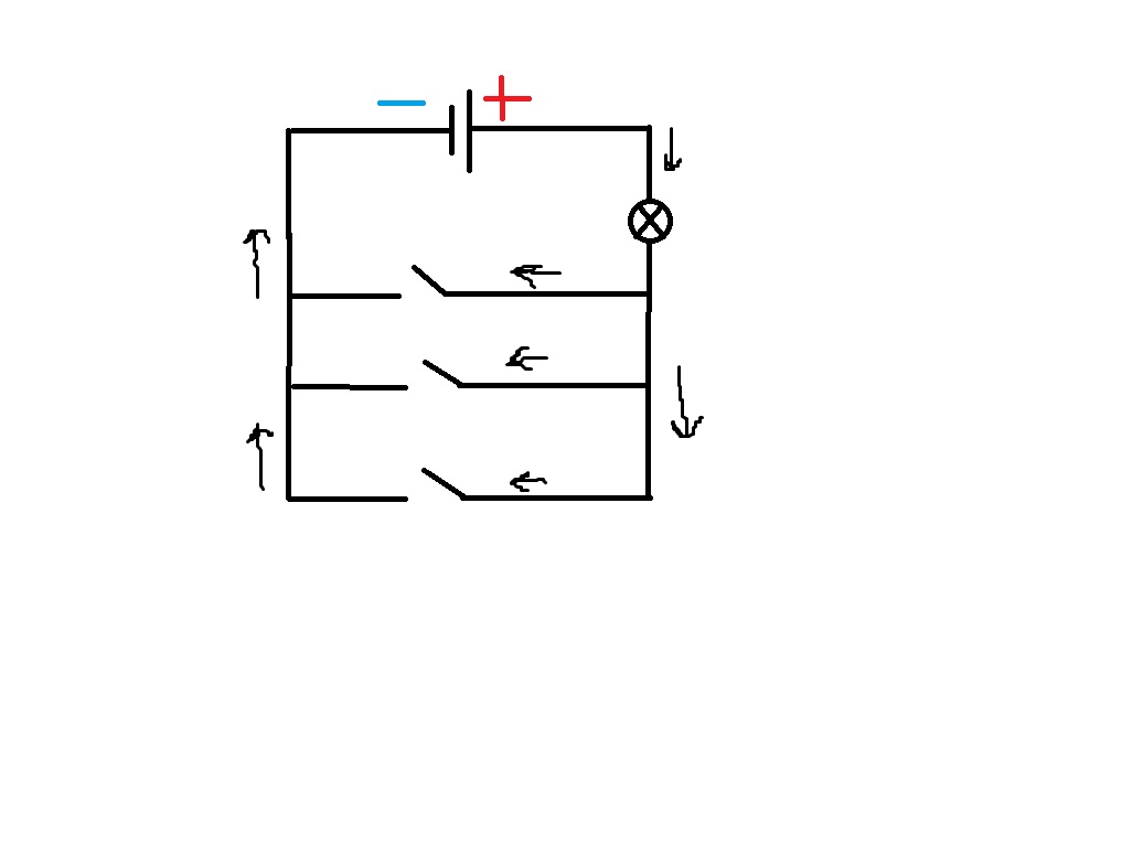 При помощи условных обозначений изобразите : схему соединения лампочки, так что бы её можно было включить из 3-х разных мест