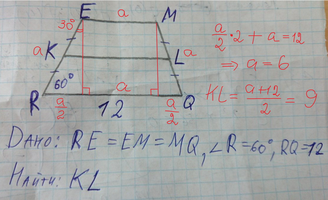 Средняя линия трапеции равна полу-сумме длин оснований...