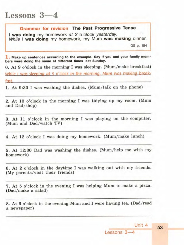 1)while I was washing the dishes at 9:30 my mum was talking on the phone