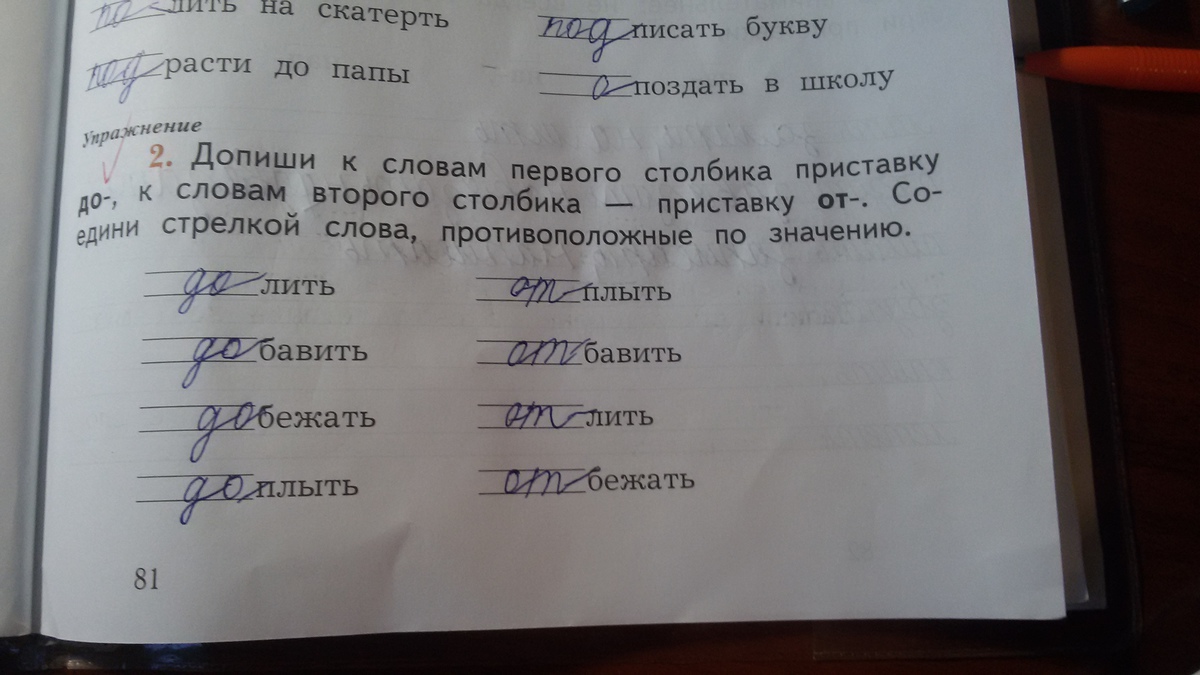 долить - отлить, добавить - отбавить, добежать - отбежать, доплыть - отплыть