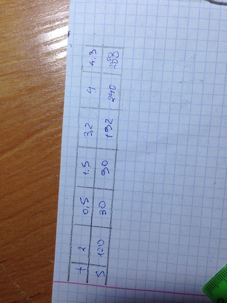 поезд движется со скоростью 60 кмч. заполнителя таблицу, в первой строке которой указано время движения t, а во второй-пройденый путь s.