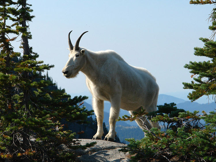 Снежные козы. Парнокопытные животные семейства полорогих. Длина тела 120-180 см,вес 85-135 кг. Шерсть белая,пушистая,длинная,густая... Длина рогов достигает 20-30 см. В основном обитает на западе Северной Америки. Расселен так же на полуострове Олимпик.