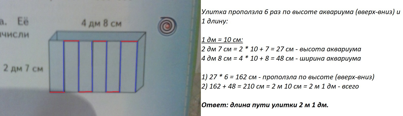 СРОЧНО улитка ползет по стенке аквариума. её путь отмечен цветной линией. вычисли длину пути улитки СРОЧНО. СЕГОДНЯ