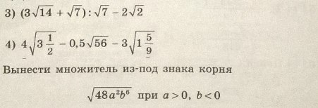 в 3) и 4) надо упростить. Ну и если кто сможет то хорошо бы еще в пятом вынести множитель из под знака корня. Все на фото.