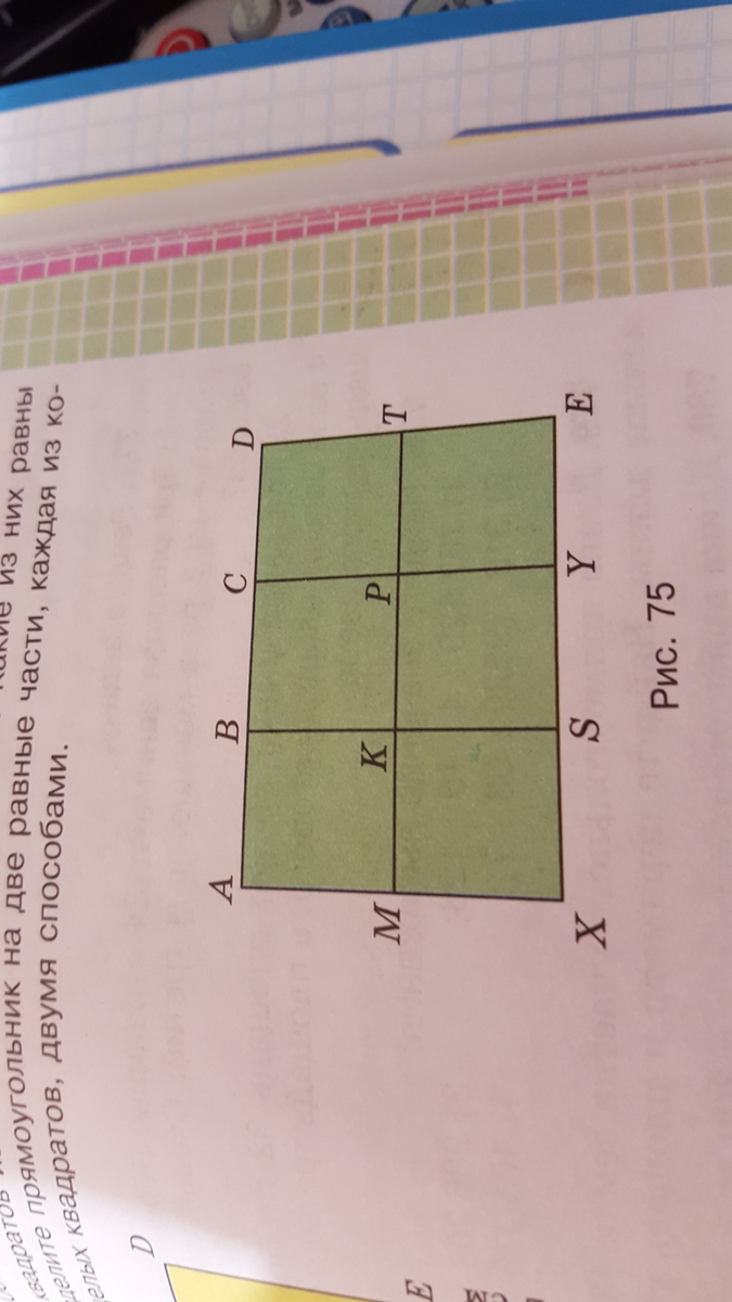 № 772. сколько квадратов изабражено на рисунке 75? какие из них равны между собой? разделите прямоугольник на две равные части каждая из которых состоит из целых квадратов двумя спосабами