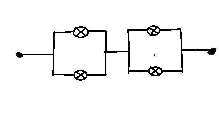 четыре лампы накаливания с сопротивлением 110 ом включены в сеть с напряжением 220 В как показано на рисунке. Найти ток в каждой лампе.