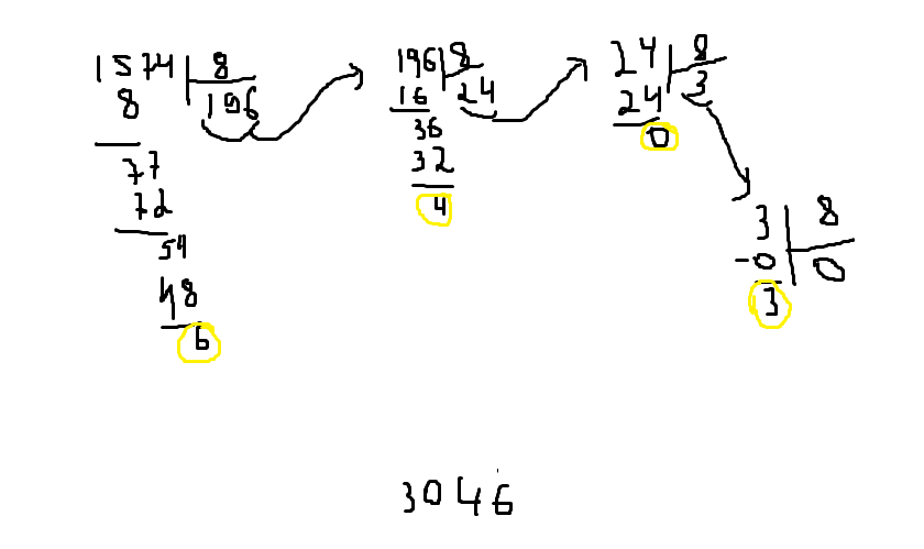 Делим число на 8, покуда частное не будет равно нулю.(вложение)