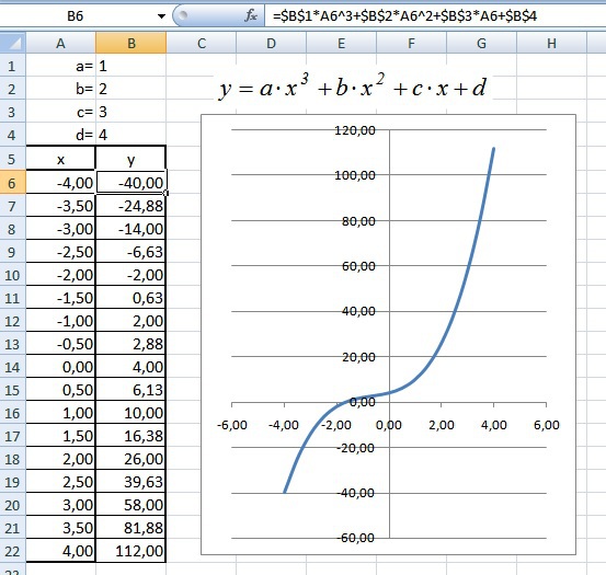 Изменив данные a, b, c, и d получаем другой вид кубической параболы.