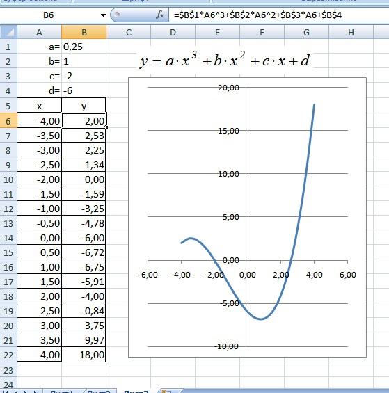 Я построил для примера КУБИЧЕСКУЮ ПАРАБОЛУ.