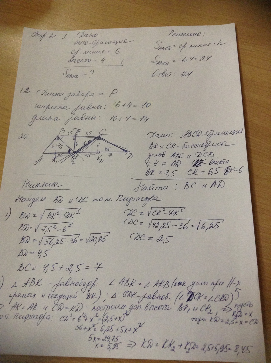 26) Проведём высоту из точки К на сторону ВС в точку М.