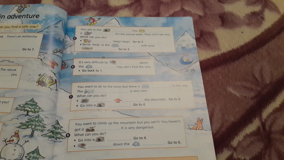 4 You go into the cave. It's very cold. The avalanche is very near.