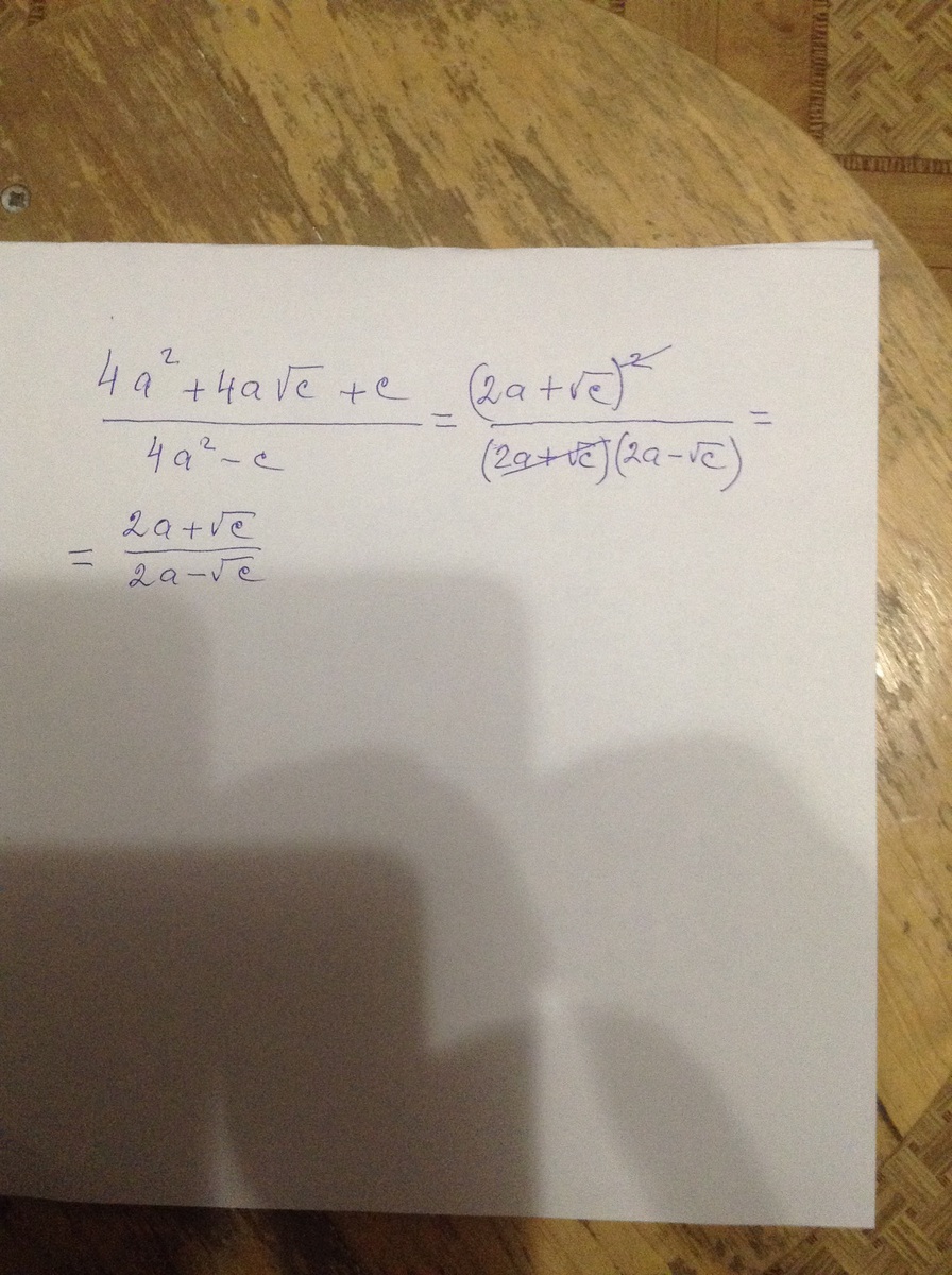 (2а+sgrt c)^2/(2a+sgrt c)*(2a-sgrt c)=(2a+sgrt c)/(2a-sgrt c).