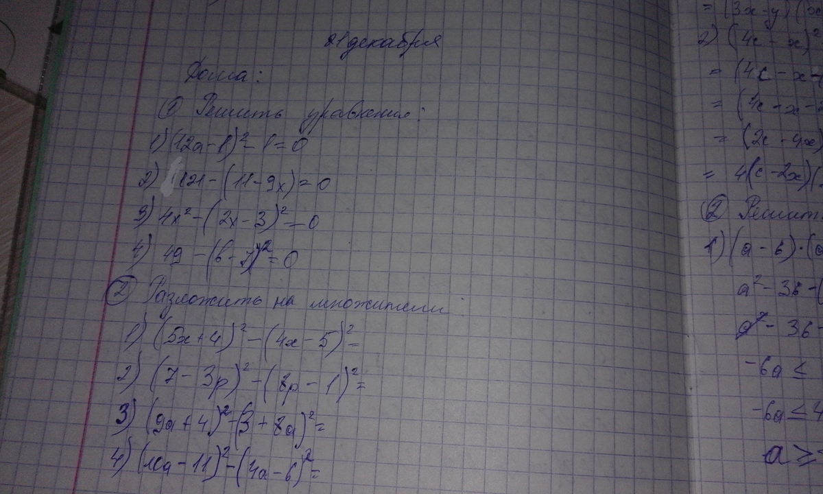 1. 1) (12а-1)^2-1=0 D=1+48=49 x1=1-7/24=-6/24 x2=1+7/24=8/24 Ответ -6/24 и 8/24