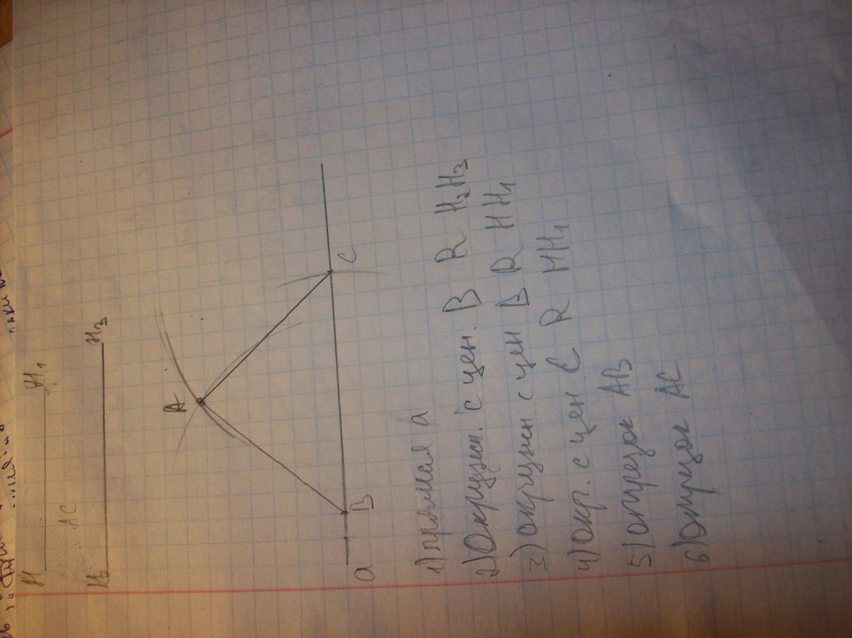 ABC с основанием BC.С помощью циркуля и линейки проведите медиану BB1 к боковой стороне AC( скинте картинку)