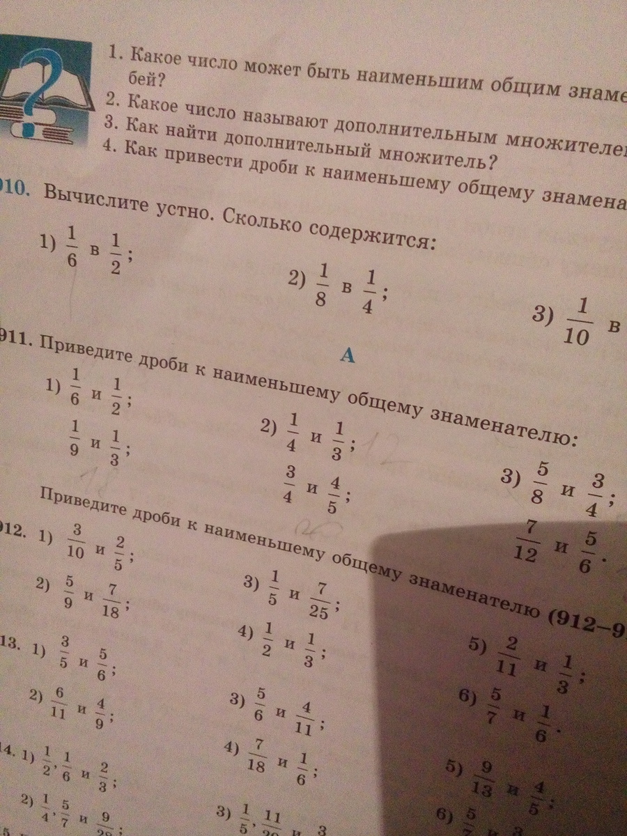 Приведите дроби к наименьшему общему знаменателю 1) 1/6 1/2 1/9 1/3 2) 1/4 1/3 3/4 4/5 3) 5/8 3/4 7/12 5/6. помагите. §911