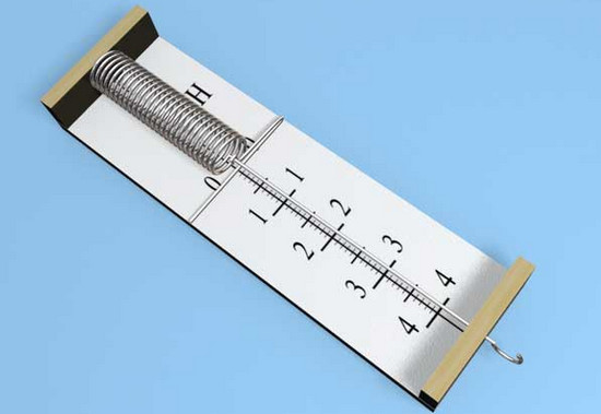 там просто закрепить динамометр к штативу и кеда указывает он там провисит черту. Скорее всего указатель будет как на картинке.
