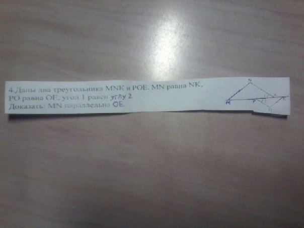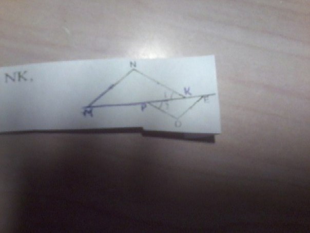 треугольник РОЕ равнобедренный, РО=ОЕ, угол2=уголРЕО=угол1, треугольник МНК равнобедренный, МН=НК, угол1=уголНМК, тогда уголНМК=уголРЕО, если при пересечении двух прямых (МН и ОЕ) третьей прямой (МЕ) внутренние разносторонние углы равны (уголНМК=уголРЕО) то такие прямы5е параллельны, МН параллельнаОЕ