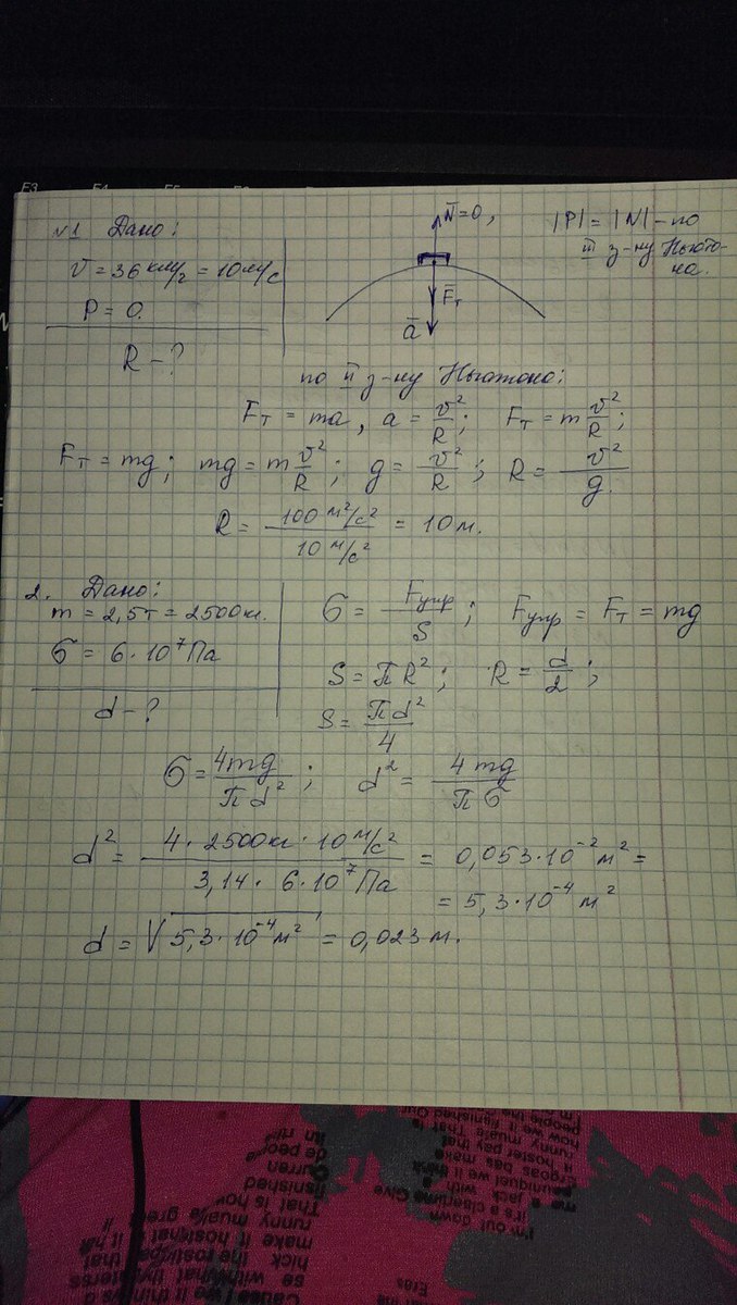 1.Автомобиль ,едущий со скоростью 36 км/ч ,не оказывает давление на середину моста.Определите радиус кривизны моста? (Написать размерность)