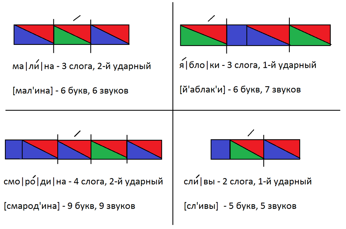 звуковые схемы слов: малина, яблоки, смородина, сливы - в приложении