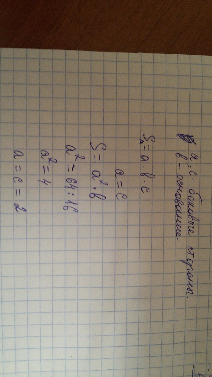 1. Найти боковую сторону равнобедренного треугольника, если его основание 16 см, а площадь 64 см кв.