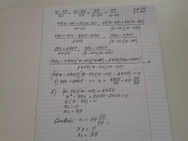 x-49/50 + x-50/49 = 49/x-50 + 50/x-49