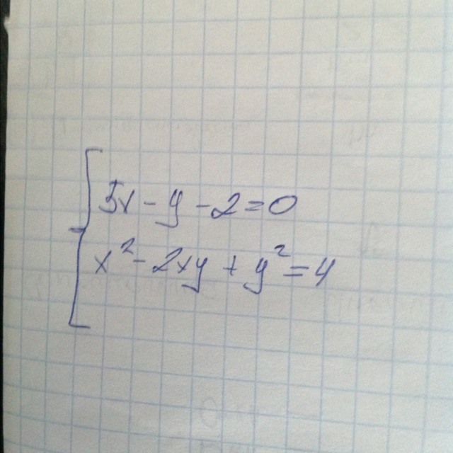{5х-у-2=0. (Х-у) в квадр=4 {у=5х-2. (Х-5х-2)в кВ = 4. {у=5х-2. -4х-2=2. {у=5х-2 -4х=4 { х=-1 У=-5-2. У=-7