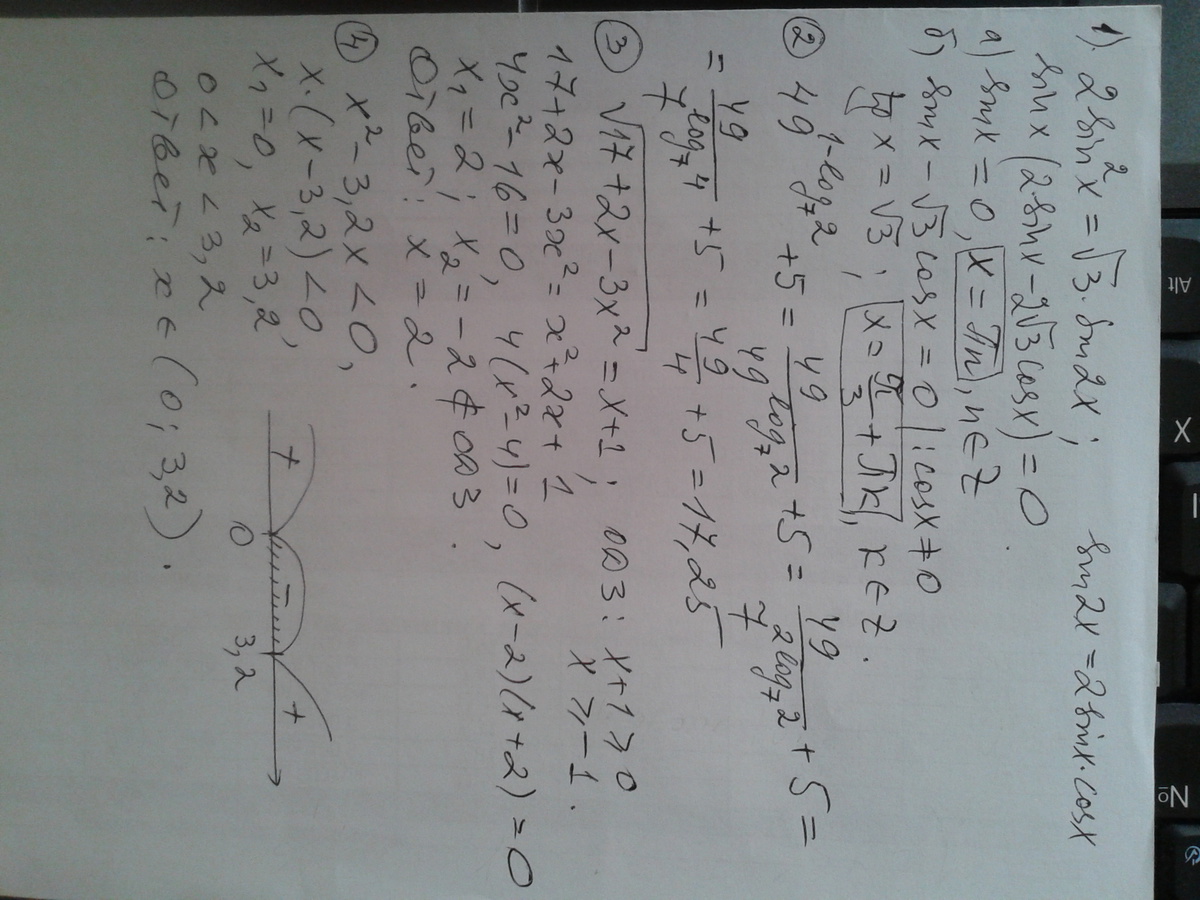 1.Решительно уравнения: 2sin^2x=√3sin2x