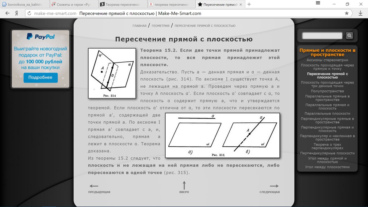 Если две точки прямой принадлежат плоскости,то вся прямая принадлежит этой плоскости.