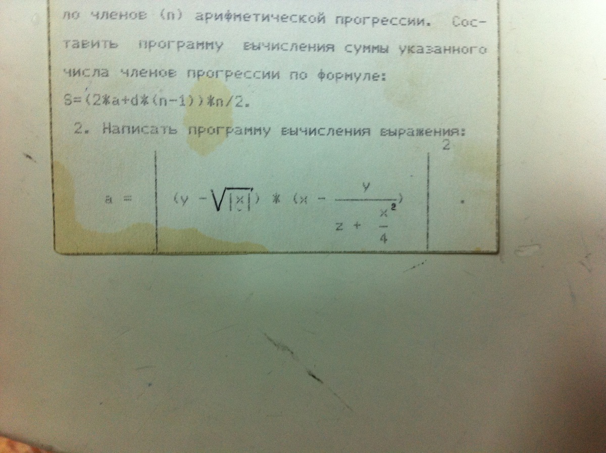 a:=(y-sqrt(abs(x)))*(x-y/(z+x*x/4));