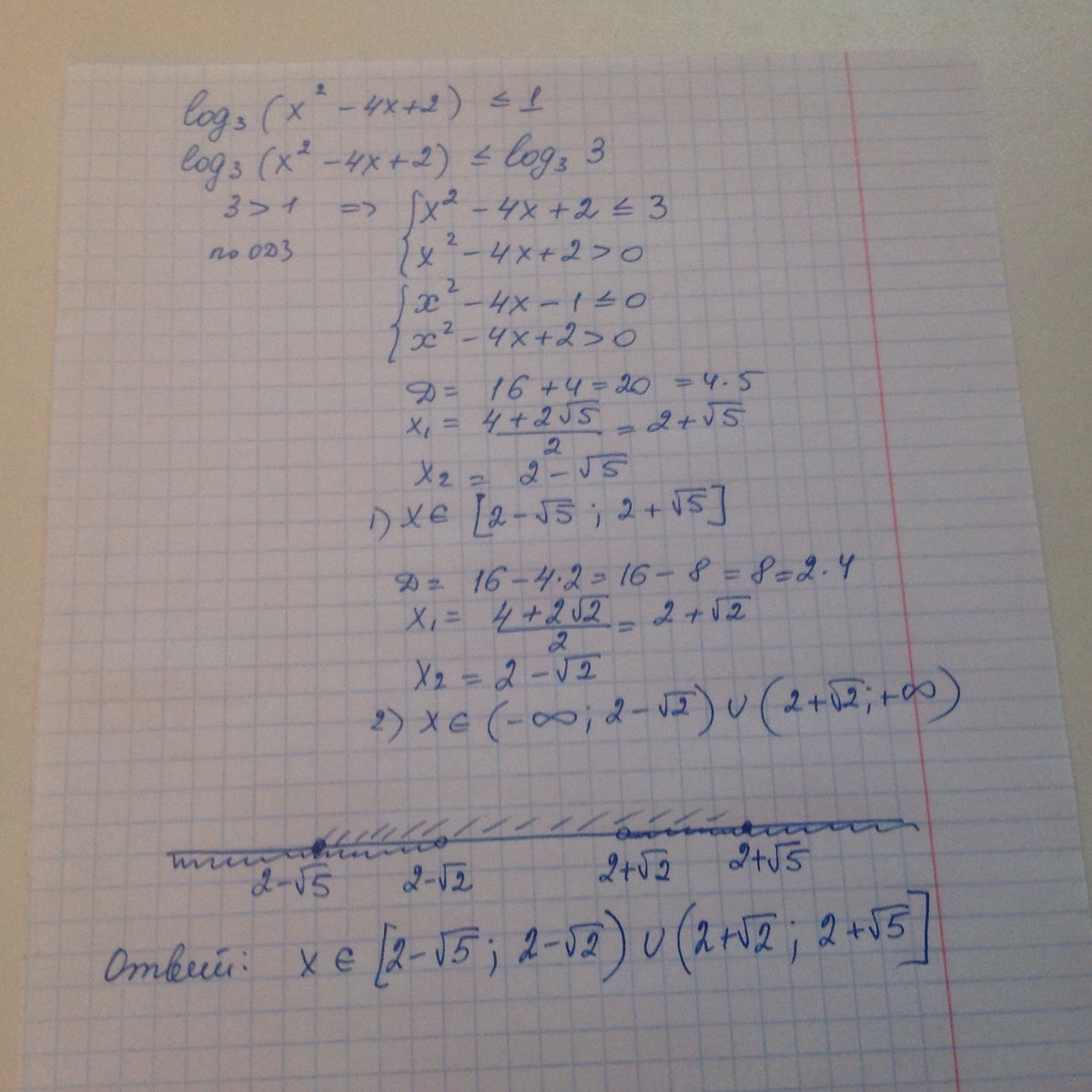 Ответ: x∈ [2-√5; 2-√2] U [2+√2; 2+√5]